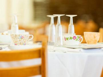 A hospitality table and the view from the private box at Hereford Racecourse.